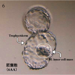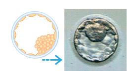 このように、脱出した胚は、まわりの細胞が露出し、子宮内膜と接触し、もぐりこみ胎盤となっていく。融解胚移植では、主に殻を外した状態の卵を移植する。