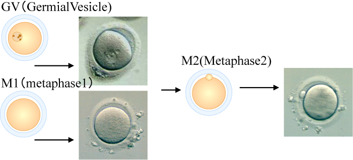 これらの卵はまだ成熟していないため、受精は行わず、成熟した状態(M2)になるまで育てていきます。