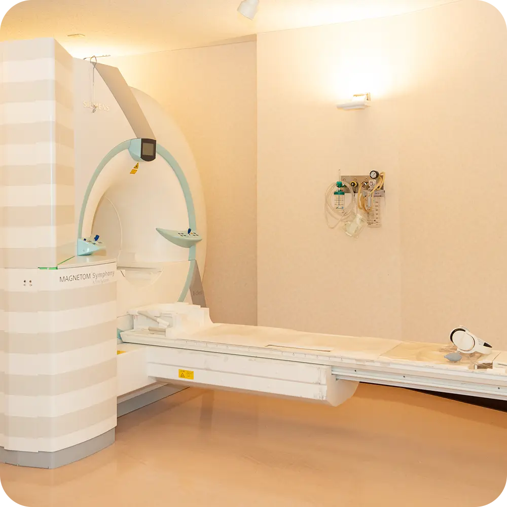 放射線科専門医が常勤しており、患者様の負担が少ない効率的な診断が行われるよう総合的な病気の診断を行います。当院内だけではなく、近隣医療機関に対して「高度医療機器(MRI、マルチスライスCT、ガンマカメラなど)」の共同利用提供をしております。放射線科専門医が常勤していますので、さまざまな疾患に対応すべく、綿密な検査プロトコールが確立しており、詳細な画像診断レポートを作成し、画像とともに提供させていただいております。地域医療に大きく貢献したいと願っております。