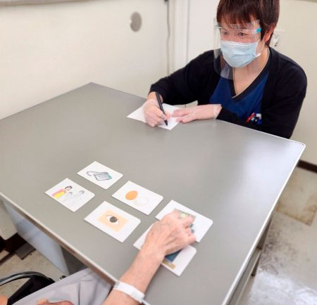 高次脳機能障害、精神状態、認知機能などを詳細に評価し、身体状況に合わせて、着替えやトイレなどのセルフケア活動、家事や仕事、余暇活動などの能力回復を図ります。