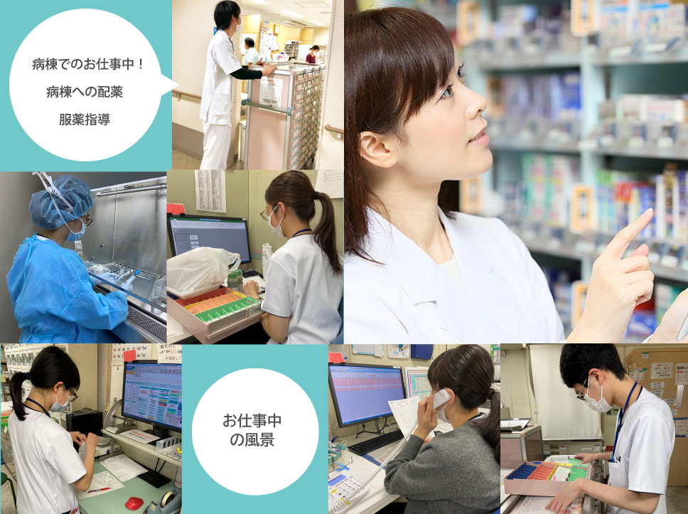 当院の薬剤科では、外来診療・入院治療までの業務で、地域を支える医療を担う機関の薬剤師として、さまざまな業務に従事するジェネラリストの育成を行います。