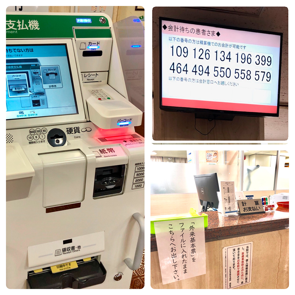 診察が終わり、「外来基本票」を受け取りましたら、総合受付の②会計準備窓口へ「外来基本票」をお出しください。会計ディスプレイ画面に受付番号が表示されましたらお支払いをお願いいたします。クレジットカードもご利用いただけます。